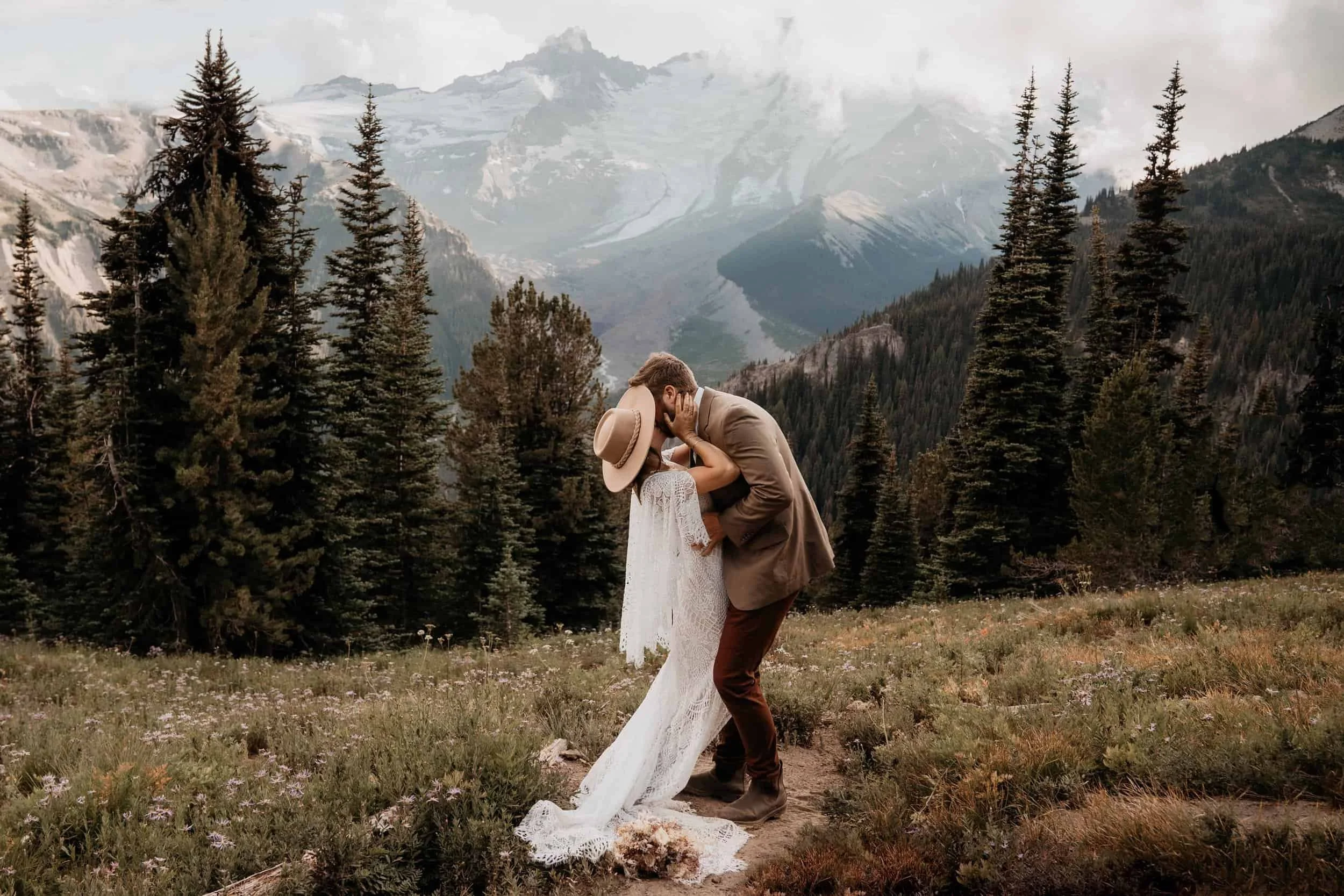 Washington has every elopement vibe you can think of. Foggy moss-filled forests, in sane mountain overlooks, wildflower fields, black sand beaches. You can get a rainforest, beach, forest, and mountains all in one day. Eloping in Washington means you get variety, privacy, and epic backdrops with just the two of you (or a few of your favorite humans).